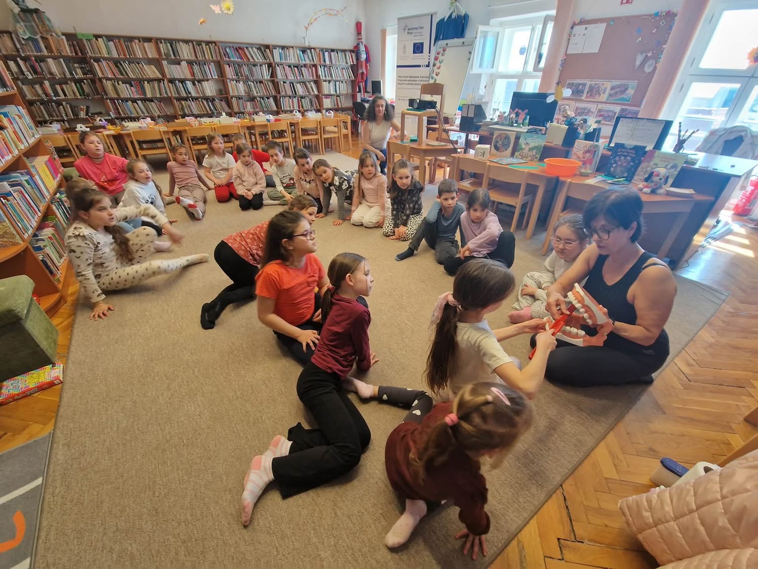 A délután sem telt eseménytelenül Répási Erika védőnő egy játékos, interaktív foglalkozással érkezett, ahol a fogápolás, a helyes fogmosás és még a tüsszentés is középpontba került. A gyerekek nemcsak hasznos ismeretekkel gazdagodtak, hanem sok mozgással és nevetéssel tették emlékezetessé a programot.